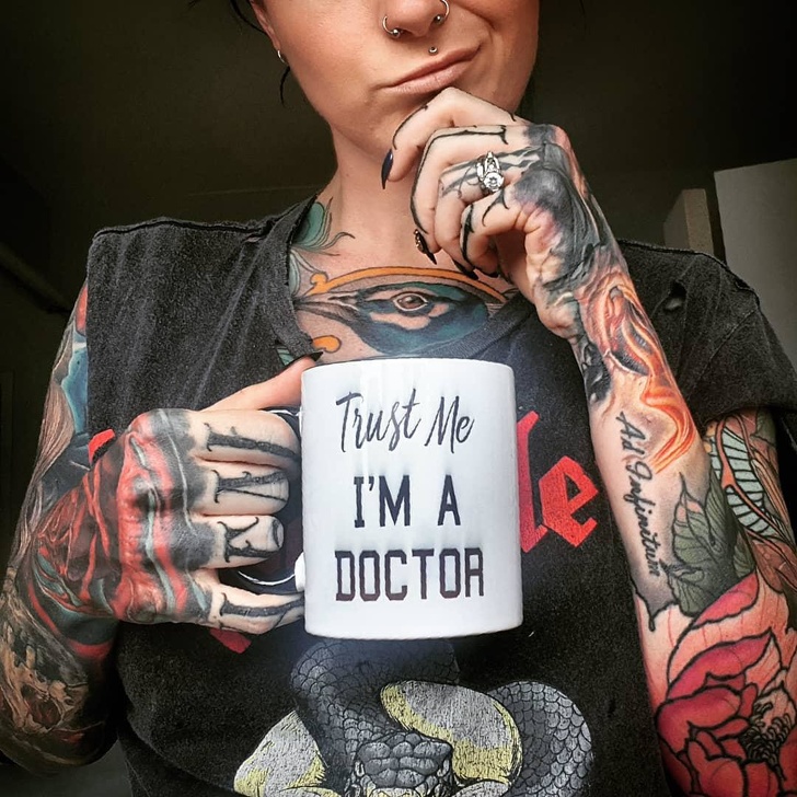 Sarah Gray — австралийский доктор, тело которого практически полностью покрыто татуировками. Если бы была такая номинация, как самый татуированный врач — девушка однозначно бы получила этот титул. Но нужен ли он Саре? Ведь на нее и так сыпется много осуждений, и прежде всего от родственников пациентов. Но как художество на теле девушки может влиять на качество ее работы?