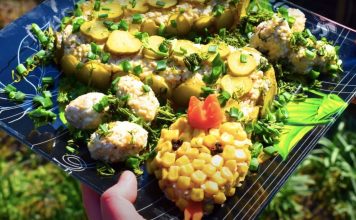 Пикантный салат на Новый год 2025 в форме змеи